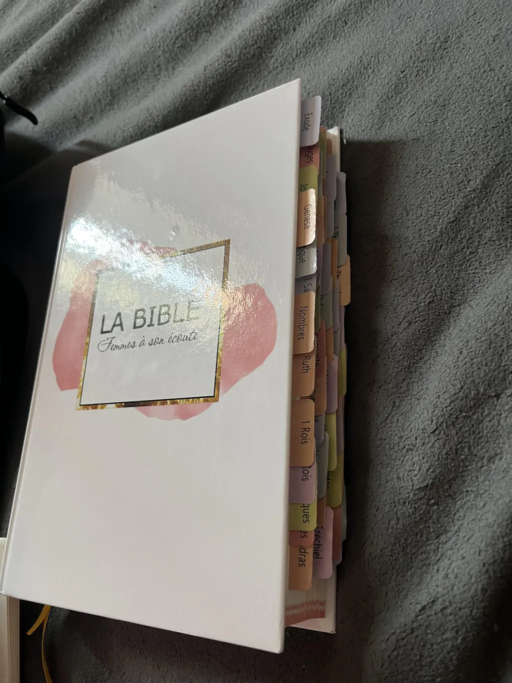 Bible Femmes À Son Ecoute (FASE) Nouvelle édition 2020 avec version de Bible Louis Segond 1910, couverture rigide blanche, rose et dorure. Première bible interactive avec QR codes.