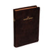 Finition en cuir brun retourné au touché velour avec rebords, reliée avec couverture souple en cuir de première qualité et titre en lettres gaufrées et dorées sur le dos du livre et sur la couverture. Deux signets (2 couleurs différentes) aident le lecteur à marquer les passages en cours de lecture.