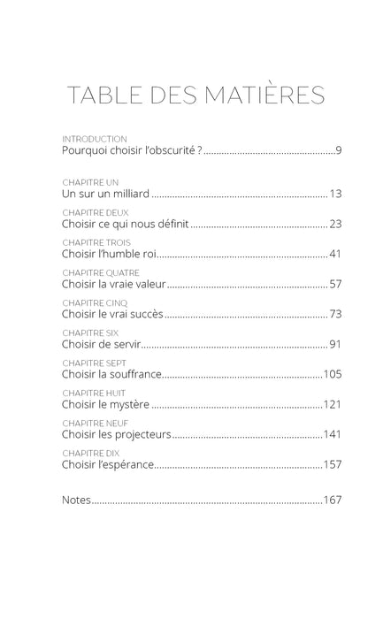 Ce livre est un appel à suivre les traces de notre humble roi, à abandonner la vision humaine du succès et commencer à vivre de manière radicalement ordinaire. Je ne pouvais pas aborder ce sujet et, en même temps, me mettre en valeur. J’ai donc choisi de rester dans l’anonymat. Êtes-vous prêts, vous aussi à relever ce défi?